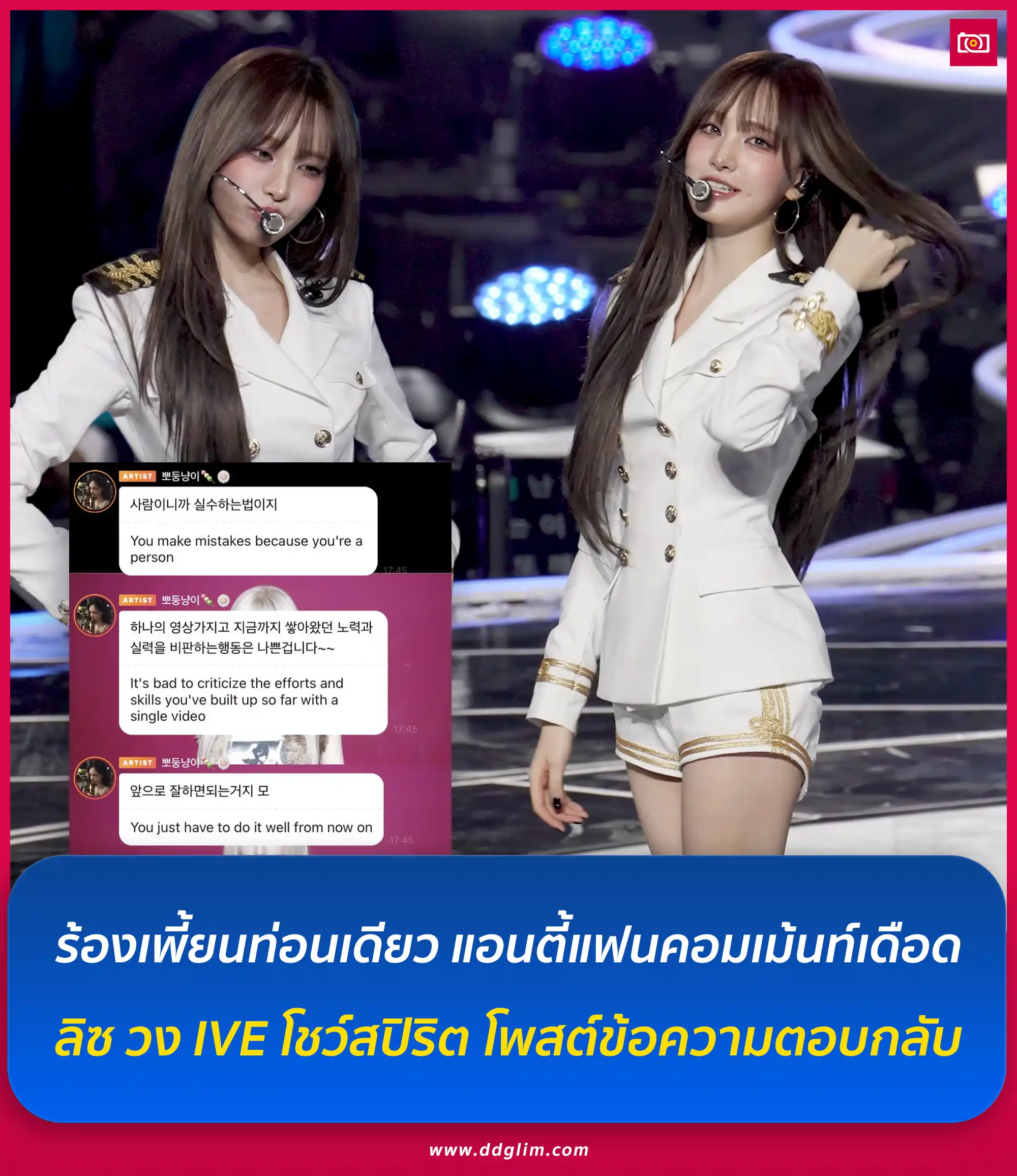 เหตุผลที่เธอแสดงความคิดเห็นเช่นนั้นก็เพราะน้องลิซร้องเพลง “Tell Me Your Wish” ของ Girls’ Generation ผิดโน้ตในคอนเสิร์ตแฟนคลับของ IVE ที่ผ่านมา
